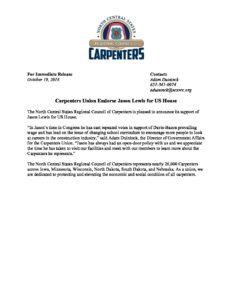 Carpenters Endorse Lewis News Release - Jason Lewis for MN
